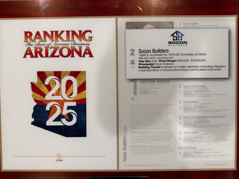 Today SOCON is a sought after Builder and Developer based in Scottsdale Arizona. We’re a team of professionals who tackle everything from complex large projects to smaller scale jobs, we strive for happy repeat clients. Fueled by our commitment to excellence, we go the extra mile to make sure clients are completely satisfied with our work. Contact us today to schedule a consultation.